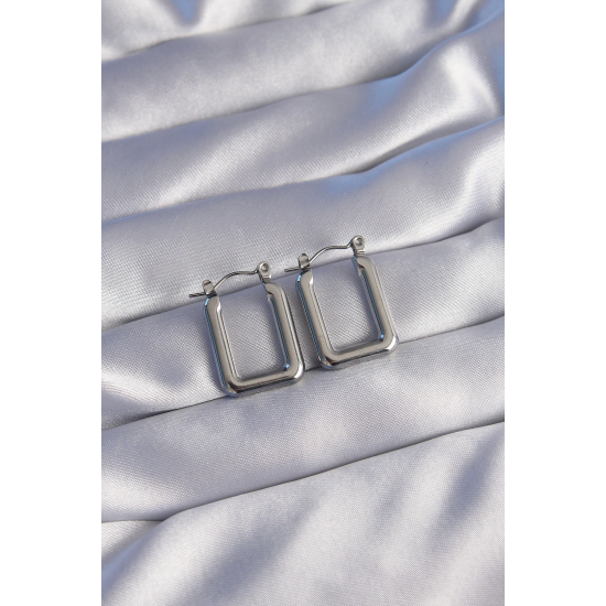 Mey İthalat® 316L Çelik Gümüş Renk Dikdörtgen Model Küpe
