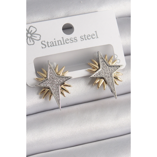 Mey İthalat® Pirinç Gold Gümüş Renk Zirkon Taşlı Kutup Yılıdız Model Kadın Küpe