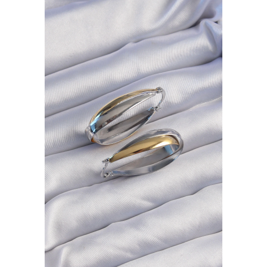 Mey İthalat® Pirinç Gold Gümüş Renkli Uzun Kıvrımlı Küpe