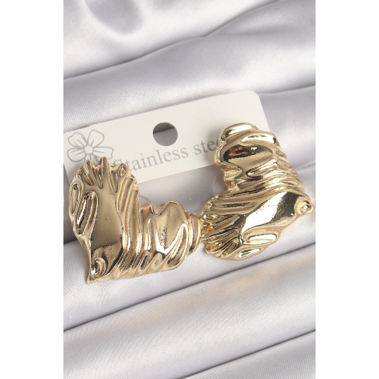 Mey İthalat® Pirinç Gold Renk İşlemeli Kalp Model Kadın Küpe