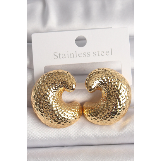 Mey İthalat® Pirinç Gold Renk Yılan Sırtı İşlemeli Yarım Halka Model Kadın Küpe