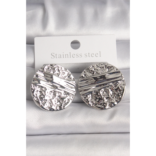 Mey İthalat® Pirinç Gümüş Renk İşlemeli Daire Plaka Model Kadın Küpe