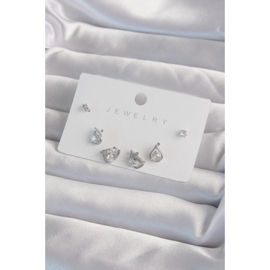 Mey İthalat® Pirinç Gümüş Renk Zirkon Taşlı Damla Model Küpe Seti