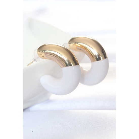Mey İthalat® CCB Beyaz Gold Çift Renk Küpe