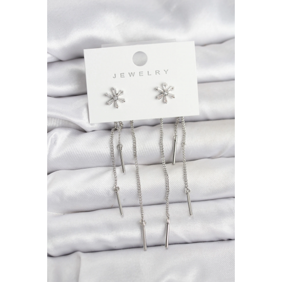 Mey İthalat® Çiçek Model Gümüş Pirinç Sallantılı Kadın Küpe