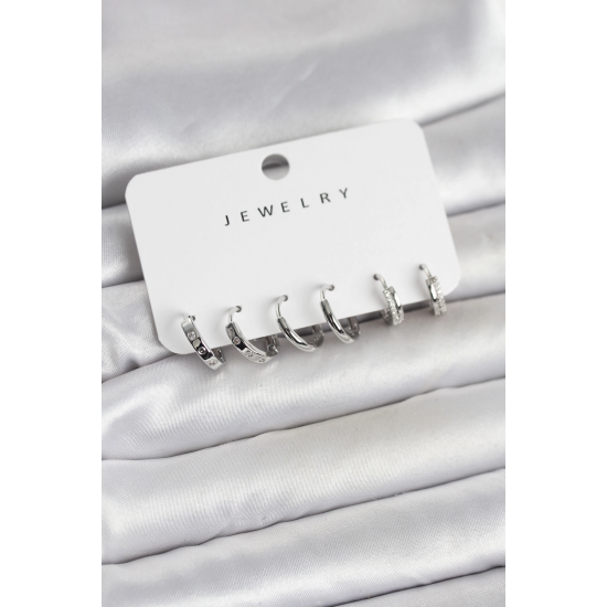 Mey İthalat® Gümüş Renk Pirinç 3 Çift Kadın Küpe Seti