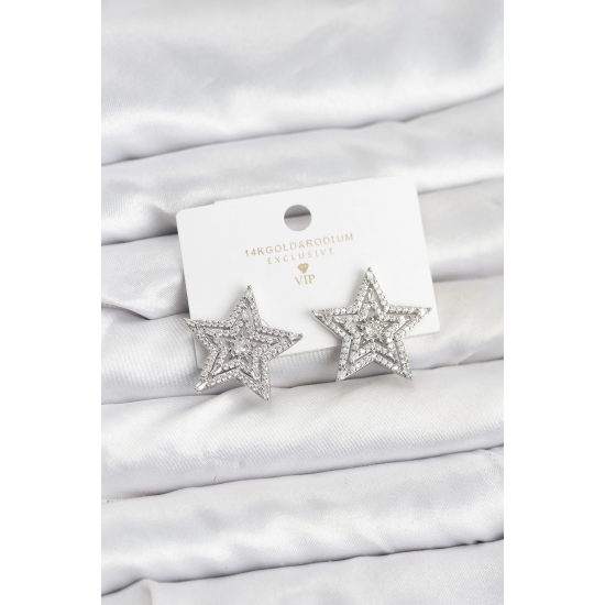 Mey İthalat® Gümüş Renk Pirinç Zirkon Taşlı Yıldız Model Kadın Küpe