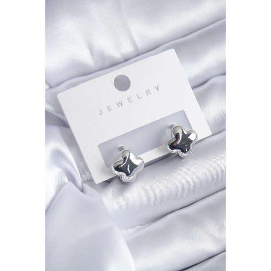 Mey İthalat® Gümüş Renk Yonca Model Pirinç Kadın Küpe