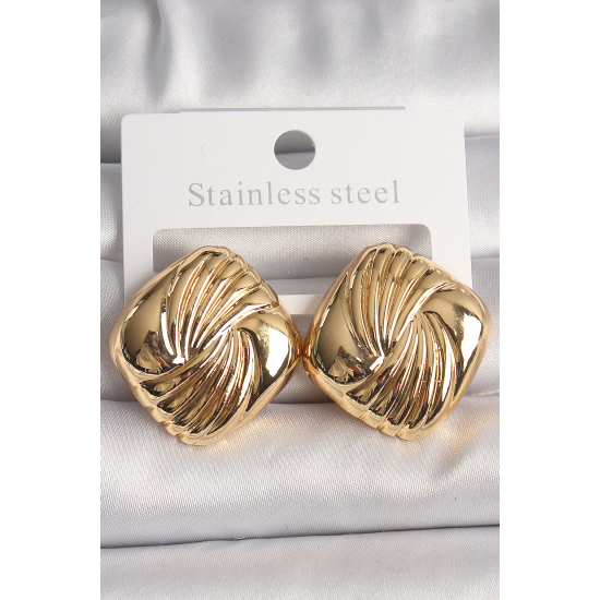 Mey İthalat® Pirinç Gold Renk İşlemeli Kare Model Kadın Küpe
