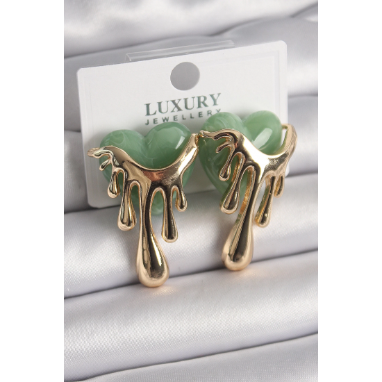 Mey İthalat® Pirinç Gold Renk Yeşil Sedefli Akan Kalp Model Kadın Küpe