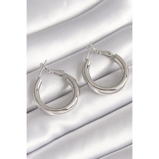 Mey İthalat® Pirinç Gümüş Renk Halka Model Kadın Küpe