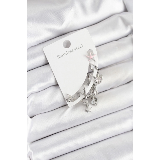 Mey İthalat® Pirinç Gümüş Renk Set Küpe
