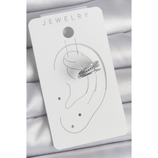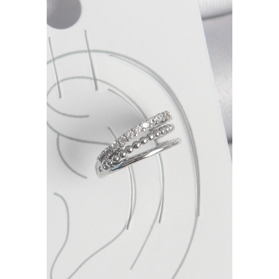 Mey İthalat® Pirinç Gümüş Renk Zirkon Taşlı 3'Lü Sıralı Model Kadın Kıkırdak Küpe