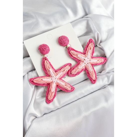 Mey İthalat® Pirinç Pembe Deniz Yıldızı Model Gold Renk Kadın Hasır Küpe