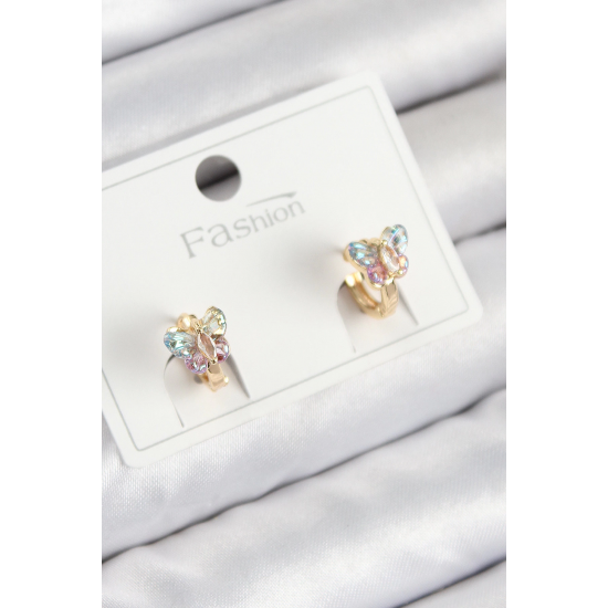 Mey İthalat® Pirinç Zirkon Taşlı Kelebek Model Gold Renk Çocuk Küpe