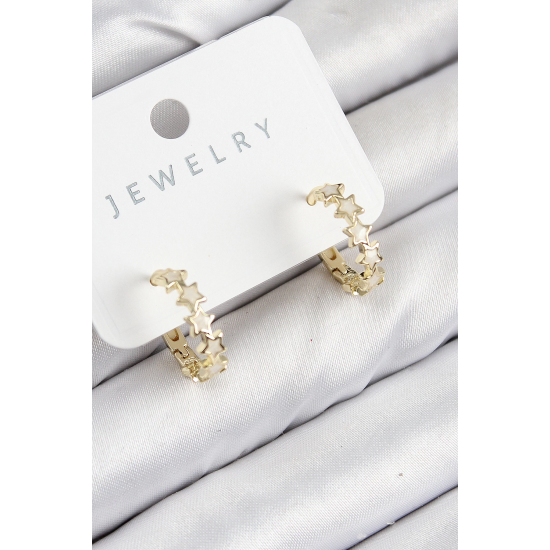 Mey İthalat® Pirinç Zirkon Taşlı Yıldız Model Gold Renk Kadın Küpe