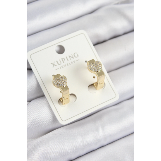 Mey İthalat® Xuping Zirkon Taşlı Kalp Model Gold Renk Kadın Küpe