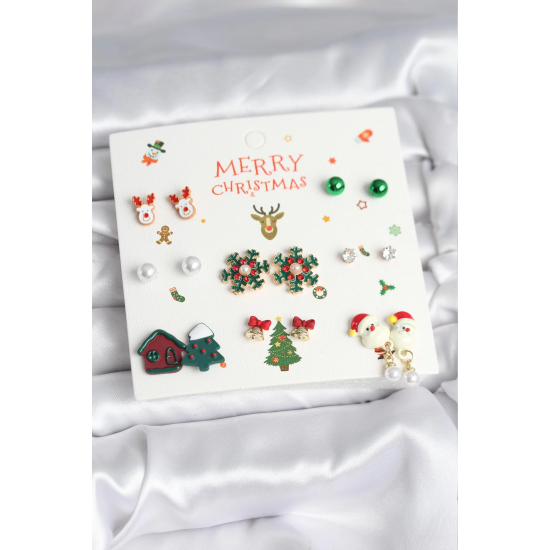 Mey İthalat® Yılbaşı Temalı 8 Çift Küpe Seti