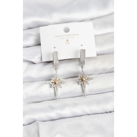 Mey İthalat® Zirkon Taşlı Gümüş Renk Pirinç Kutup Yıldızı Model Kadın Küpe