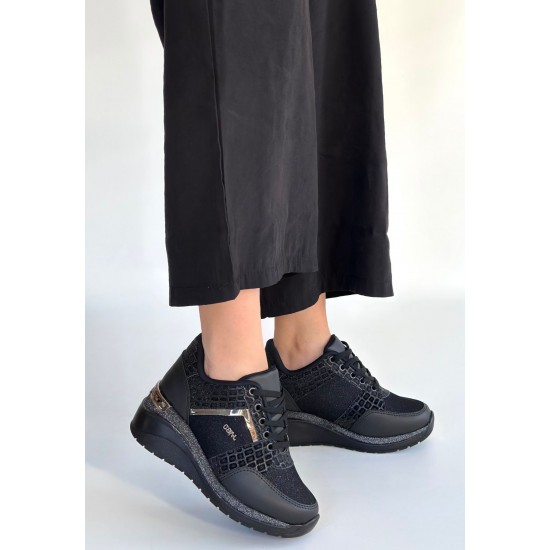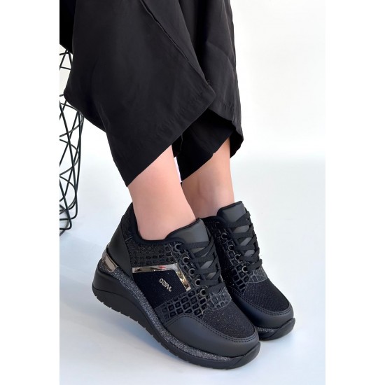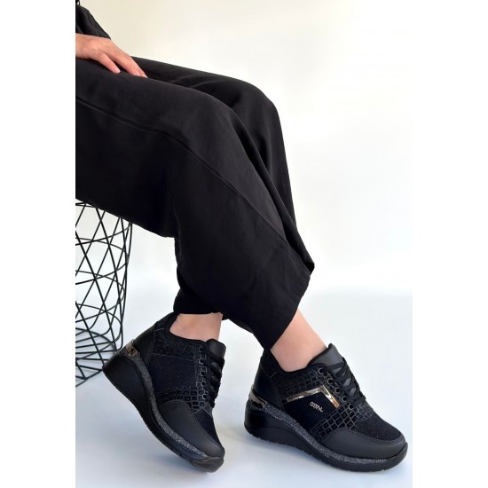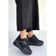 Geja Siyah Cilt Bağcıklı Spor Ayakkabı