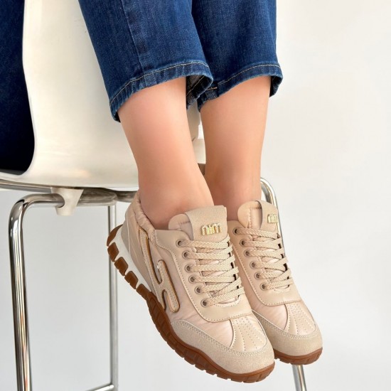 Huer Bej Nubuk Bağcıklı Spor Ayakkabı
