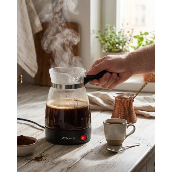 Mey İthalat® Cam Cezve Kahve Makinesi 650W Elektrikli 5 Fincan Kapasiteli Türk Kahvesi Makinesi