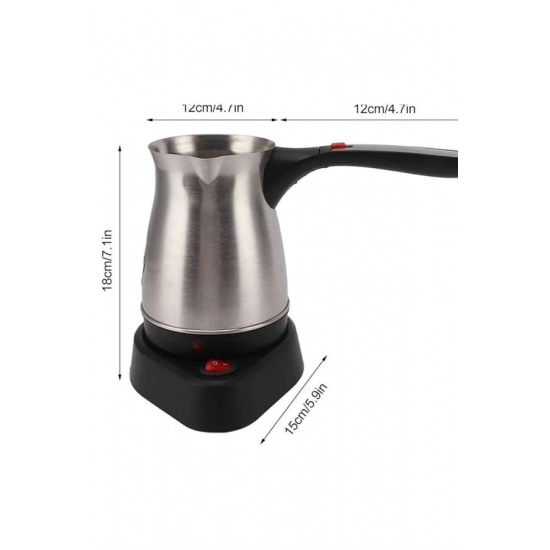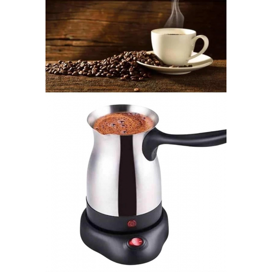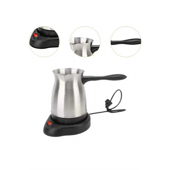 Yüksek performansı ve pratik özellikleriyle öne çıkan bu elektrikli cezve, 800 watt gücü sayesinde mükemmel Türk kahvesi pişirir. 300 ml kapasitesiyle 6 fincana kadar kahve hazırlayabilirsiniz, böylece misafirlerinize ya da kendinize hızlıca lezzetli bir kahve sunabilirsiniz. Gizli rezistans teknolojisi, güvenli ve verimli bir ısıtma sağlar, aynı zamanda temizlik açısından büyük kolaylık sunar.360 derece dönebilir kablosuz tabanı, kullanım sırasında esneklik ve rahatlık sağlar. Bu özellik, cezvenin mutfakta her açıdan rahatça kullanılabilmesini mümkün kılar. Paslanmaz çelikten üretilmiş gövdesi, uzun ömürlü ve dayanıklı olmasının yanı sıra şık bir görünüm sunar. Kolayca temizlenebilen yapısı, hijyenik kullanım olanağı tanır ve kahve hazırlarken temizlik derdini ortadan kaldırır.Cezvenin üzerinde yer alan kırmızı güç düğmesi, açma ve kapama işlemlerini kolaylaştırır. Ergonomik, ısınmayan kulpu ise güvenli bir kullanım deneyimi sağlar. Paslanmaz çelik yapısı, hem dayanıklılığı hem de modern görünümüyle mutfağınıza zarif bir dokunuş katar.Bu elektrikli cezve, Türk kahvesi severler için mükemmel bir seçenek olup, hem lezzetli kahveler hazırlamanızı hem de mutfakta şıklık yaratmanızı sağlar. Hem fonksiyonel hem de estetik açıdan kullanışlı bir cihazdır.
