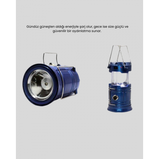 Açık hava etkinlikleri, kamp, balıkçılık ve doğa yürüyüşleri gibi aktivitelerde güvenilir bir ışık kaynağına ihtiyaç duyduğunuzda, güneş enerjili kamp lambası imdadınıza yetişir. Gündüz güneş ışığından topladığı enerjiyle şarj olan bu çevre dostu lamba, gece olduğunda güçlü ve verimli bir aydınlatma sunarak karanlıkta güvenle hareket etmenizi sağlar. Elektriğin sınırlı olduğu ya da hiç bulunmadığı bölgelerde en pratik çözümlerden biridir.Şarjlı çalışma sistemi, sürekli pil satın alma derdini ortadan kaldırarak ekonomik bir kullanım sağlar. Lambanın kutusunda pil bulunmaz; bu da ürünün daha hafif olmasını ve dış mekânda kolay taşınabilmesini mümkün kılar. Kompakt tasarımı sayesinde sırt çantasında, araç ekipmanlarında veya kamp çantasının küçük bölmelerinde bile rahatlıkla taşınabilir.Güneş enerjili lambanın en dikkat çekici özelliklerinden biri, üzerinde bulunan kızaklı sistemdir. Kızaklı yapı sayesinde lamba, hareket esnasında bile sabit durur ve sarsıntılardan etkilenmeden aydınlatmaya devam eder. Bu özellik hem çadır içinde hem yürüyüş sırasında hem de engebeli zeminlerde ekstra güvenlik sağlar. Ayarlanabilir ışık açısı sayesinde ışığı ihtiyaç duyduğunuz yöne yönlendirebilir, çalışma alanınızı ya da çadırın içini kolayca aydınlatabilirsiniz.Ürünün çevre dostu yapısı, doğada uzun süre vakit geçirenler için büyük bir avantajdır. Güneş enerjisi kullanarak kendi kendine şarj olur ve bu sayede enerji tasarrufu sağlar. Kamp gecelerinde, elektrik kesintilerinde, acil durumlarda ya da karavan seyahatlerinde güvenilir bir aydınlatma sunar. Ayrıca hafif yapısı, uzun yürüyüşlerde kullanıcıyı yormaz.Güneş enerjili kamp lambası; doğa sporlarıyla ilgilenenler, kampçılar, balıkçılar ve açık hava aktivitelerine meraklı herkes için ideal bir ekipmandır. Portatif yapısı, uzun ömürlü kullanımı ve pratik şarj sistemi ile her zaman yanınızda bulunması gereken bir üründür.