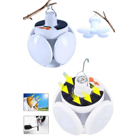 Solar Güneş Enerjisi ve USB Şarjlı 5 Kanatlı Taşınabilir Lamba – Çok Fonksiyonlu, Dayanıklı ve Çevre Dostu AydınlatmaHer türlü açık hava etkinliği, acil durumlar ve günlük yaşamda ihtiyaç duyduğunuz aydınlatmayı sağlayacak pratik bir çözüm arıyorsanız, Solar Güneş Enerjisi ve USB Şarjlı 5 Kanatlı Taşınabilir Lamba tam ihtiyacınızı karşılayacak özelliklere sahip! Güneş enerjisiyle veya USB ile şarj edilebilir özelliğiyle her koşulda güvenilir bir ışık kaynağı sunan bu lamba, taşınabilirliği ve pratik kullanımıyla ön plana çıkar.5 kanatlı tasarım, ışığı geniş bir alana yayarak daha etkili bir aydınlatma sağlar. Ayrıca, katlanabilir özellik sayesinde ışık açısını istediğiniz gibi ayarlayabilir ve karanlık alanlarda daha geniş bir bölgeyi rahatlıkla aydınlatabilirsiniz. Askı aparatı ile dilediğiniz yere asarak kolayca kullanabilirsiniz. Bu özellik, özellikle kamp, piknik ve açık hava etkinlikleri için son derece kullanışlıdır.Güneş enerjisiyle şarj etme özelliği, doğa dostu bir kullanım sunar. Ayrıca, USB şarj seçeneği ile hızla enerji depolayabilir, acil durumlarda her zaman kullanıma hazır olmasını sağlayabilirsiniz. Ürün, su geçirmez IP65 özelliğiyle dış mekan koşullarına dayanıklıdır, bu sayede yağmurda bile güvenle kullanılabilir.45 LED ışık kaynağı, ışığın parlaklığını artırarak etrafınızı net bir şekilde aydınlatır ve 6500K renk sıcaklığı ile etkili bir görüş sağlar. 6-8 saat çalışma süresi ile uzun süreli kullanım imkânı sunar.Teknik Özellikler:Güneş Paneli: 5.5V polikristal silikon güneş paneliPil: 18650 lityum pil, 2400mAhIşık Kaynağı: 45 LEDÇalışma Süresi: 6-8 saatŞarj Süresi: Solar şarj için 8 saat / USB şarj ile 6 saatŞarj Yöntemi: Solar şarj (DC 3.5V) / USB şarj (voltaj 4.5V)Su Geçirmezlik: IP65Renk Sıcaklığı: 6500KÜrün Boyutu: 14 cm * 11.5 cmPaket İçeriği:1 Adet 5 Kanatlı Solar Pratik LambaDoğada, evinizde ya da acil durumlarda kullanabileceğiniz bu solar lamba, yüksek verimliliği, dayanıklılığı ve esnek kullanım özellikleri ile her zaman yanınızda olması gereken bir aydınlatma aracı olacaktır. Hem güneş enerjisiyle hem de USB şarj ile enerji toplama seçenekleri sayesinde her durumda işinizi kolaylaştırır.