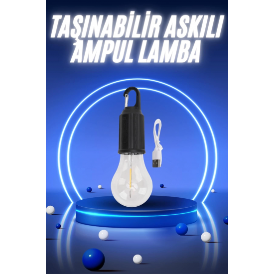 Mey İthalat® Taşınabilir Şarjlı Led Ampul Askılı Lamba Kamp Bahçe Lambası