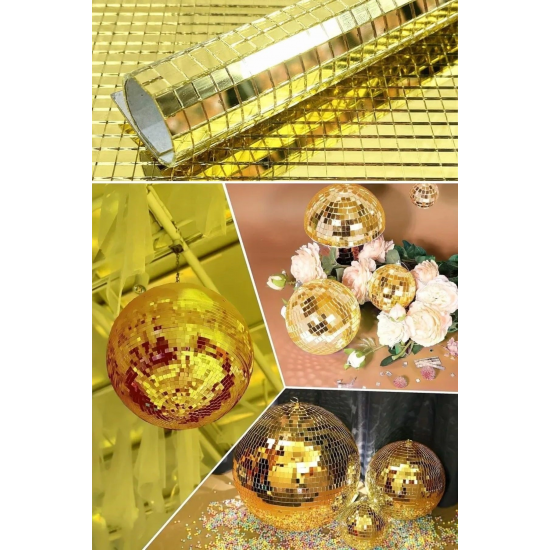 Mey İthalat® Kare Gold Cam Mozaik Fayans Çıkartmaları El İşi Kare Cam Fayans Kendinden Yapışkanlı Aynalı Dekor Panel 30x30 Cm