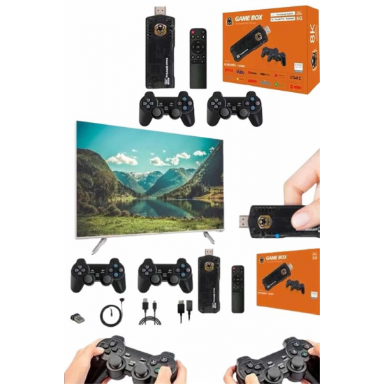 Mey İthalat® Game Box Android Tv 36500 Oyunlu Atari 5g 8k HDR Ultra HD 64 GB