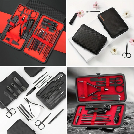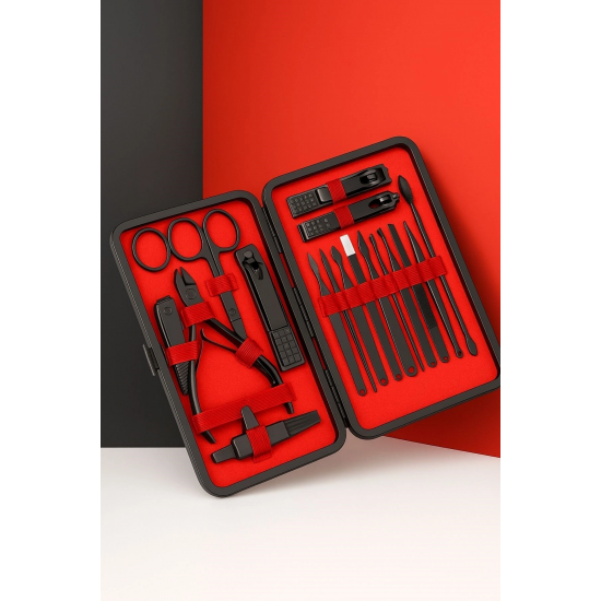 Mey İthalat® 24 Parça Kendiliğinden Deri Çantalı Seyahat Tipi Manikür Pedikür Seti
