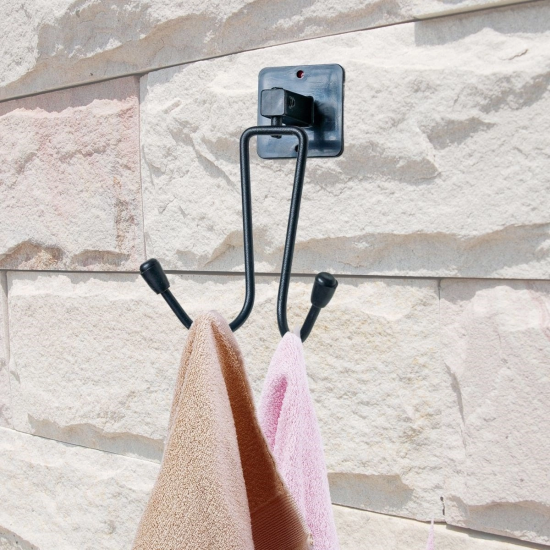 Kendiliğinden Yapışkanlı Siyah Paslanmaz Metal Bornoz ve Havlu Askılığı