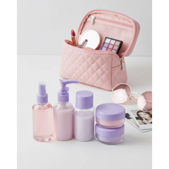 Seyahat boy 5’li kozmetik şişe seti, düzenli ve hijyenik taşıma imkanı sunar. 30 ml kapasiteli şişeler, uçak kurallarına uygundur.Şeffaf ve dayanıklı yapısı sayesinde uzun süreli kullanım sağlar. Sızdırmaz kapakları ile güvenlidir.Fermuarlı çanta ile düzenli saklama sunar. Seyahat ve günlük kullanım için pratik çözümdür.