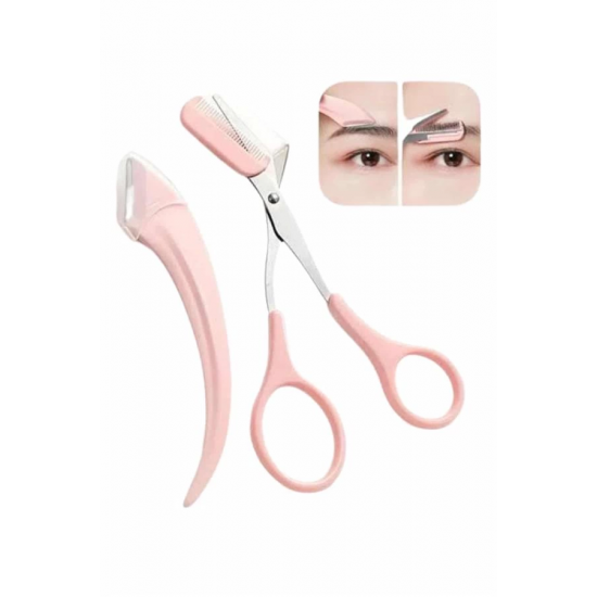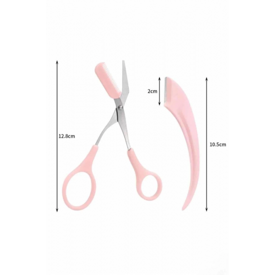 Mey İthalat® Taraklı Kaş Makası ve Ustura Seti Kaş Düzeltme Makası Kaş Bıyık Alma Aleti