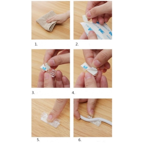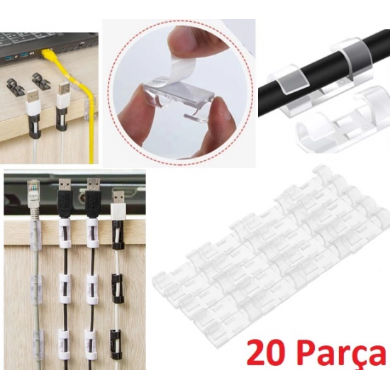 Mey İthalat® 20'li Yapışkanlı Kablo Sabitleyici Şeffaf Klips