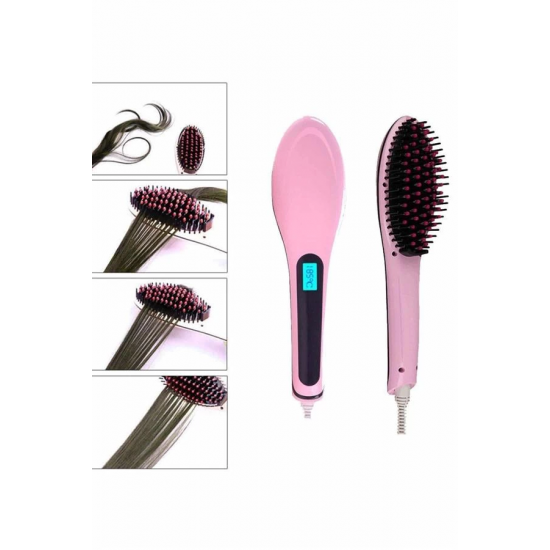 Mey İthalat® Elektrikli Saç Düzleştirici Tarak Saç Düzleştirici Fırça Sıkı Dişli Pembe