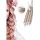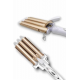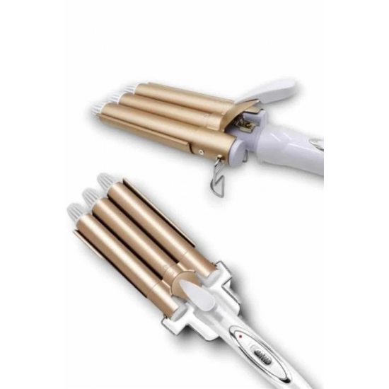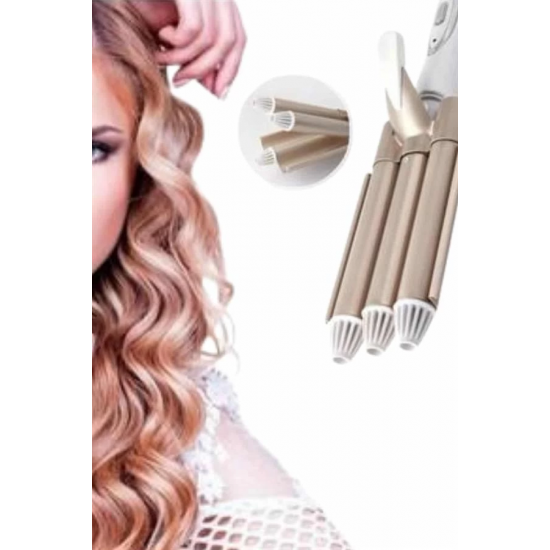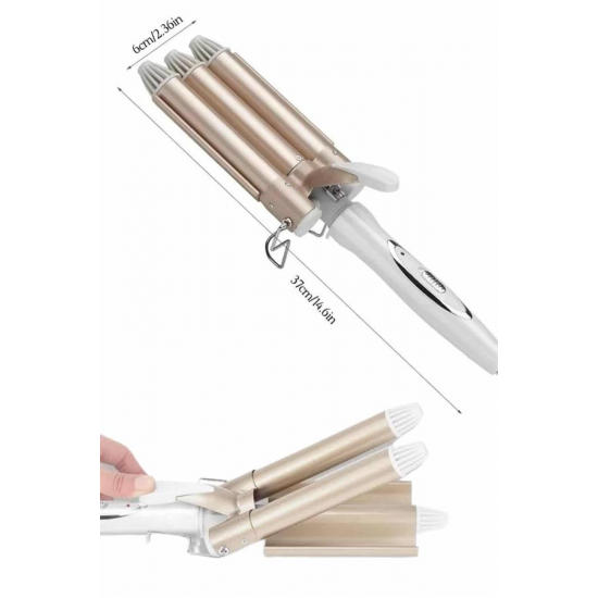 Profesyonel seramik wag su dalgası saç maşası, saçlarınıza doğal ve kalıcı dalgalar kazandırmak için özel olarak tasarlanmıştır. 25 mm çapındaki üçlü fıçı sistemi, su dalgası efektini mükemmel şekilde yansıtarak hem hacimli hem de belirgin bukleler oluşturur. Orta ve uzun saçlar için ideal olan bu maşa; düğün, davet, parti ya da günlük kullanımda zarif ve dikkat çekici bir görünüm elde etmenizi sağlar. 170°C ve 220°C olmak üzere iki kademeli sıcaklık ayarı sayesinde, saç tipinize en uygun ısıyı seçebilir; ister ipeksi hafif dalgalar ister belirgin ve kalıcı bukleler yaratabilirsiniz.