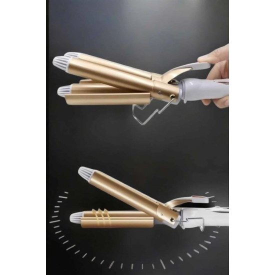 Üçlü saç maşası, profesyonel görünümlü, doğal ve dayanıklı bukleler oluşturmak için mükemmel bir araçtır. Turmalin seramik teknolojisini kullanarak saçınıza zarar vermeden büyük miktarlarda negatif iyon üretir ve bu sayede saçı nemlendirir, elektriklenmeyi önler. Böylece saçınız daha sağlıklı ve parlak görünürken, şekillendirdiğiniz bukleler de kalıcı hale gelir. 25 mm çapında 3 namlulu tasarımıyla, orta uzunluktaki ve uzun saçlarda mükemmel sonuçlar elde edebilirsiniz. PTC ısıtma elemanı sayesinde saç maşası yalnızca 30 saniye içinde 170°C'ye ulaşır, sıcaklık hızlıca ve eşit şekilde yayılır, böylece saçı nazikçe şekillendirirsiniz. 170°C ve 220°C arasında ayarlanabilir sıcaklık seçenekleri, farklı saç tiplerine uygun kullanım imkanı sunar. Ergonomik tasarıma sahip kaymaz tutamak ve haşlanma önleyici uçlar, kullanım esnasında güvenliği artırırken, istenmeyen yanma risklerini ortadan kaldırır. Ayrıca, ısı yalıtımlı ön braket, cihazı güvenle bırakabilmenizi sağlar. Üçlü saç maşası, kolay kullanım ve üstün performansı ile her zaman mükemmel bukleler oluşturmanızı sağlar.
