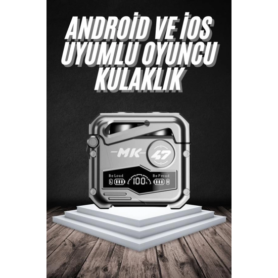 Gerçek Kablosuz ÖzgürlükMK47 Bluetooth kulaklık, dokunmatik kontrol özelliği ile kullanımı son derece kolay hale getirir. Cep telefonu oyuncuları için özel olarak optimize edilen bu kulaklık, ultra düşük gecikme süresiyle oyun deneyiminizi zirveye taşır. Kulaklıkları şarj kutusundan çıkardığınız anda otomatik olarak telefonunuzla eşleşir, böylece hiçbir anı kaçırmazsınız.Kristal Netliğinde 3D Ses ve Aktif Gürültü EngellemeTaşınabilir medya oynatıcı, mobil cihaz veya oyun konsolu ile uyumlu olan MK47, güçlü 3D ses teknolojisiyle sizi oyunun ya da müziğin tam ortasına taşır. Aktif gürültü iptali özelliği sayesinde dış ortam seslerini izole eder. Farklı boyutlarda sunulan kulak tıkaçları sayesinde kulaklığınız sabit kalır ve konforlu bir kullanım sunar – ister spor yapın ister günlük yürüyüşlerinizde kullanın.Güçlü Pil Performansı ve IPX5 Su DirenciKulaklıklar tek bir şarjla 4-5 saat kesintisiz kullanım sunar. 400mAh kapasiteli şarj kutusu ise kulaklıklarınızı birkaç kez yeniden şarj edebilir. Type-C şarj portu sayesinde hızlı ve pratik şekilde şarj olur. IPX5 su geçirmezlik derecesi ile yağmura ve tere karşı dayanıklıdır – dış mekan kullanımı için ideal bir seçenektir.