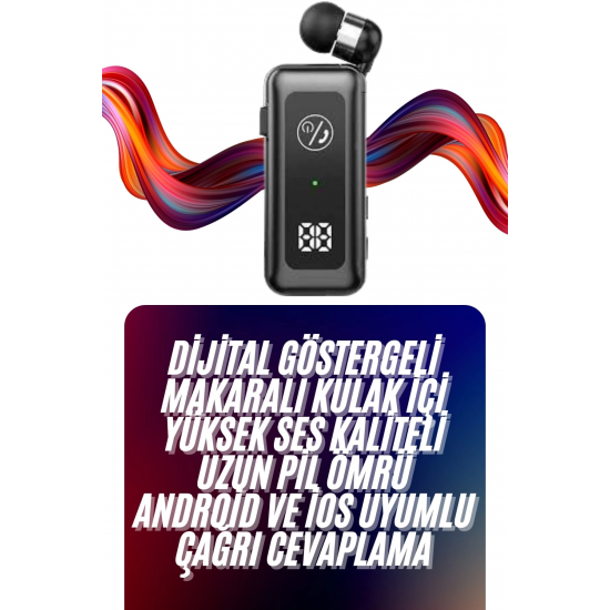 Bluetooth 5.2 Teknolojili Makaralı Kulaklık | Dijital Ekran, Hafıza Kartı Desteği, Titreşimli BildirimGelişmiş Bluetooth 5.2 teknolojisiyle donatılmış bu kablosuz kulaklık, müzik dinlerken ya da telefon görüşmeleri yaparken üstün ses kalitesi ve stabil bağlantı sunar. Hafıza kartı desteği sayesinde, microSD kartınızı kulaklığınıza takarak kablosuz bağlantıya ihtiyaç duymadan müzik dinleme imkanı bulabilirsiniz. Aynı anda iki cihaza bağlanabilme özelliği ise çoklu cihaz kullanımı için ideal bir çözüm sunar.Kulaklık, içe sarılabilen kablo tasarımı ile kullanım esnasında düzeni sağlar ve taşıma sırasında karışıklığı engeller. Makaralı tasarımı, kabloların kolayca sarılmasını sağlar. Dijital ekran, bağlantı durumu ve batarya seviyesini göstererek kullanımınızı kolaylaştırır. Ayrıca, kulaklık üzerinde yer alan yaka klipsi ile pratik kullanım sağlar, kulaklığınızı kolayca sabitleyebilirsiniz.Titreşimli bildirim sistemi, çağrılar ve mesajlar geldiğinde sizi anında uyarır. Böylece önemli bildirimleri kaçırmazsınız. Dinamik sürücüleri ile HD ses kalitesi sunarak, müzik ve aramalarınızda doğal, net ve dengeli bir ses deneyimi sağlar. Yüksek gürültü engelleme teknolojisi, dışarıdaki sesleri izole eder, böylece çevresel gürültüden uzak kalarak daha kaliteli bir ses deneyimi yaşarsınız.Kulaklık, müzik ve çağrılar arasında otomatik geçiş yaparak size kesintisiz bir deneyim sunar. Kolayca oynat, durdur, ses açma/kapama, şarkı atlama gibi fonksiyonları gerçekleştirebilir ve gelen aramalara hızlıca yanıt verebilirsiniz. Kamera fonksiyonlarını da kulaklık üzerindeki tuşlar aracılığıyla kontrol edebilirsiniz.Bluetooth 5.2 teknolojisi, hızlı veri aktarımı ve stabil bağlantı sağlarken, 10 metreye kadar kablosuz erişim mesafesi sunar. 140mAh kapasiteli şarj edilebilir batarya, 20 saate kadar kullanım sağlar ve yalnızca 20 dakikalık şarj ile kullanıma hazır hale gelir. USB Type-C şarj girişi sayesinde hızlı ve verimli şarj edebilirsiniz.