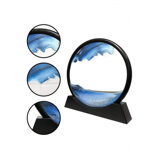 Mekanik detaylarla modern tasarımı bir araya getiren bu 3D LED ışıklı kum saati, sadece bir dekoratif obje olmanın ötesine geçerek bulunduğu ortama zarafet ve huzur katar. Mavi renk temasıyla dinginliği simgelerken, içerisinde bulunan farklı tonlardaki kumların yavaş ve dengeli hareketi izleyiciye adeta hipnotize edici bir seyir sunar. Kumun sıvı içerisinde akışını izlemek, günlük stresinize kısa bir ara vermenize ve rahatlamanıza yardımcı olur.Ürünün dikkat çekici yönlerinden biri de LED aydınlatma özelliğidir. Gece lambası olarak kullanıldığında, yumuşak ve göz yormayan ışığı sayesinde hem dinlendirici bir ambiyans oluşturur hem de gece saatlerinde görsel bir şölen sunar. Kullanılan LED ışıklar uzun ömürlü olup enerji tasarrufu sağlar.Kompakt yapısı ile ev, ofis, çalışma odası, otel lobisi ya da kafe gibi farklı mekanlarda estetik bir dokunuş sunar. Ayrıca bu ürün, sevdiklerine anlamlı ve farklı bir hediye vermek isteyenler için de ideal bir seçenektir. Kumların yavaşça şekil değiştirerek yeniden desenler oluşturması, her bakışta yeni bir görüntüyle karşılaşmanızı sağlar ve bu özelliğiyle dinamik bir dekor unsuru olur.Sağlam ve kaliteli malzemelerden üretilmiş olan bu tablo, uzun süreli kullanımda bile estetik görünümünü korur. Üç boyutlu yapısı sayesinde derinlik hissi verir ve bulunduğu ortamda dikkatleri üzerine çeker.Paket İçeriği:1 adet mavi renk 3D LED ışıklı kum saati / gece lambası / dekoratif kum sanatı objesi.