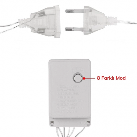 8 Fonksiyonlu 16 Saçaklı Perde Led 3 x 1 (Günışığı)