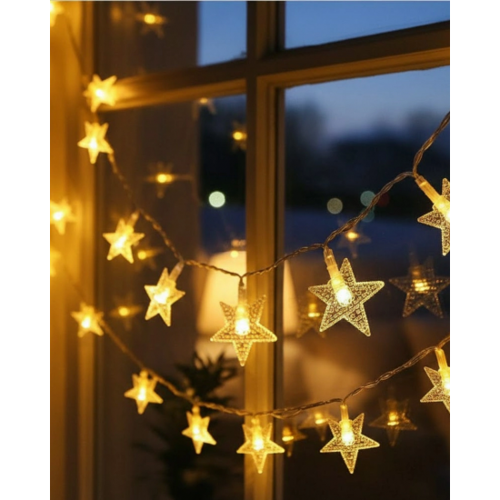 Mey İthalat® Günışığı Beyaz Yıldız Işık Zinciri 5 Metre Enerji Tasarruflu Dekor