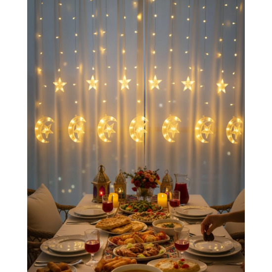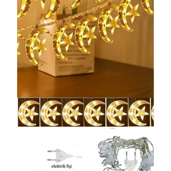Mey İthalat® Sıcak Beyaz Ay Yıldız Işık Zinciri Parti Düğün Ramazan Dekoru