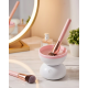 Elektrikli makyaj fırçası temizleme makinesi, makyaj fırçalarının hijyenik ve etkili şekilde temizlenmesini sağlayarak günlük bakım rutinini kolaylaştıran pratik bir güzellik cihazıdır. Makyaj fırçaları, düzenli temizlenmediğinde üzerinde makyaj kalıntıları, yağ ve bakteri birikmesine neden olabilir. Bu durum hem cilt sağlığını olumsuz etkiler hem de makyaj uygulamasının kalitesini düşürür. Otomatik fırça temizleyici, bu sorunu kısa sürede ve zahmetsiz şekilde çözmek için tasarlanmıştır.USB ile çalışan yapısı sayesinde cihaz, farklı ortamlarda rahatlıkla kullanılabilir. Bilgisayar, powerbank veya USB adaptör gibi pek çok güç kaynağı ile uyumludur. Ekstra kurulum gerektirmeden, kabloyu takarak anında çalıştırılabilir. Kompakt ve hafif tasarımı, ürünü hem evde hem de seyahatlerde kullanım için ideal hale getirir.Cihazın iç kısmında yer alan silikon temizleme yüzeyi, fırça kıllarına zarar vermeden derinlemesine temizlik sağlar. Yumuşak silikon çıkıntılar, fırça başlığının şeklini ve yumuşaklığını bozmadan kirleri etkili şekilde çözer. Elektrikli dönüş mekanizması sayesinde temizlik işlemi manuel yıkamaya göre çok daha kısa sürede tamamlanır. Birden fazla fırçanın aynı anda temizlenebilmesi, zamandan tasarruf edilmesine katkı sağlar.Tek tuşla çalışabilen kullanıcı dostu tasarımı, ürünü herkes için kolay kullanılabilir hale getirir. Montaj gerektirmeyen yapısı sayesinde karmaşık işlemlerle uğraşmaya gerek kalmaz. Temizlik sonrası hızlı kurutma özelliği, fırçaların fazla suyunu alarak kısa sürede tekrar kullanıma hazır hale gelmesine yardımcı olur.Düzenli kullanımda makyaj fırçalarının ömrünü uzatır ve makyaj uygulamalarında daha pürüzsüz, temiz sonuçlar elde edilmesine destek olur. Makyaj temizleme solüsyonu ile birlikte kullanıldığında temizlik performansı daha da artar. Güzellik rutinini kolaylaştıran, pratik ve hijyenik bir yardımcıdır.