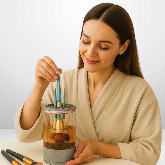 Mey İthalat® USB Şarjlı Makyaj Fırçası Temizleyici Aparat Hızlı Kurutmalı, Çok Yönlü Fırça Temizleyici