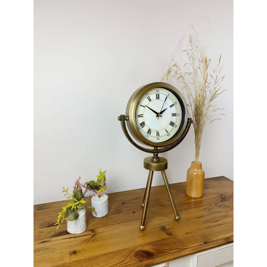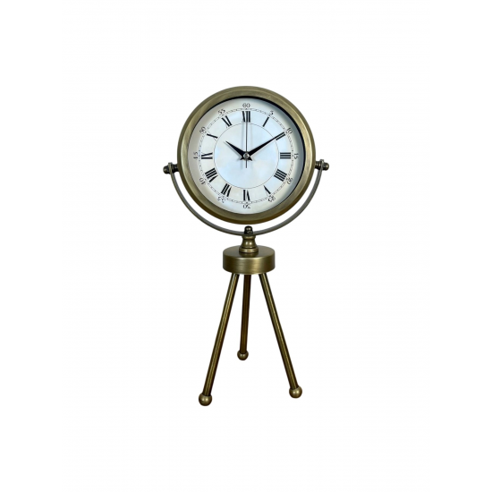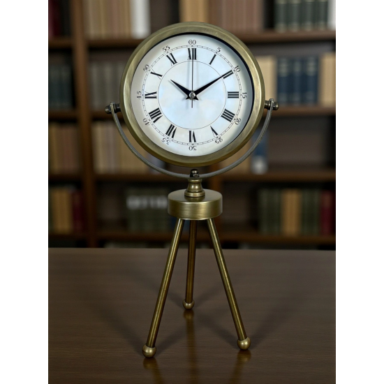 Şıklığı ve zarafeti bir araya getiren Eskitme Üç Ayaklı Metal Masa Saati, modern ve klasik dekorasyon tarzlarına uyum sağlayan özel bir tasarıma sahiptir. Tamamen metal gövde ve eskitme kaplama yüzeyi ile bulunduğu ortama lüks bir dokunuş katarken, üç ayaklı sağlam tripod standı sayesinde hem dengeli hem de dekoratif bir duruş sunar.