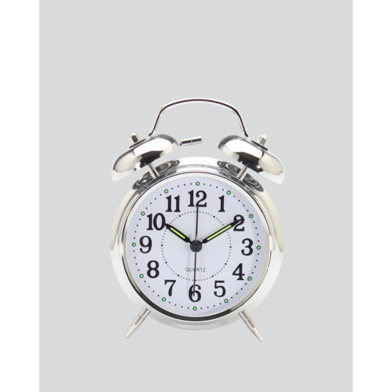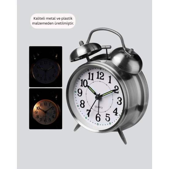 Mey İthalat® Gümüş Renkli Sessiz Işıklı Dekoratif Masa Üstü Çalar Saat Alarmlı